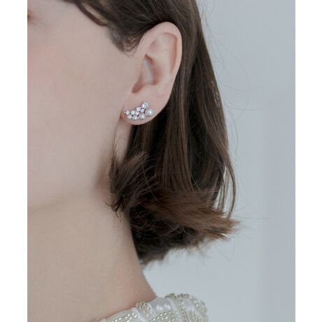 小さなパールと輝くビジューが連なる、エレガントなピアス