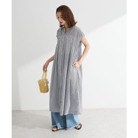 #インド綿 #コットンボイル #シャーリング#羽織り #ロング #2WAYワンピース #Aライン#リゾート #体型カバー#夏##ストライプワンピース #前開きワンピース #きれいめ #半袖