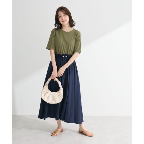 クリーンな印象のリブに異素材をドッキングしたワンピース。ソフトフィットな五分袖がアームラインをすっきりと華奢に見せてくれます。ウエストドロストでシルエットのアレンジが出来るのも嬉しいポイント。配色コントラストが着映えを演出し、一枚さらっと着るだけでサマ見えを叶えてくれるおすすめのアイテムです。清涼感のあるクール素材を使用。透け感[なし]
