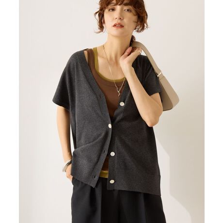 カーディガン フレンチスリーブ 前後差ヘムライン シェル風ボタン スタイルアップ 爽やか ロングシーズン トップス カーディガン 30代 40代 レディース カジュアル 春夏 25SS AMERICAN HOLIC AMERICAN HOLIC アメリカンホリック アメホリ