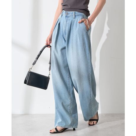デニムパンツ ウエストタック ワイドシルエット 美脚効果 シンプルトップス相性 ロングシーズン カジュアル ボトムス パンツ 30代 40代 レディース カジュアル 春夏 25SS AMERICAN HOLIC AMERICAN HOLIC アメリカンホリック アメホリ