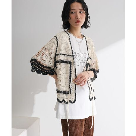 ・ELENCARE DUE カギ針風レースカーデ