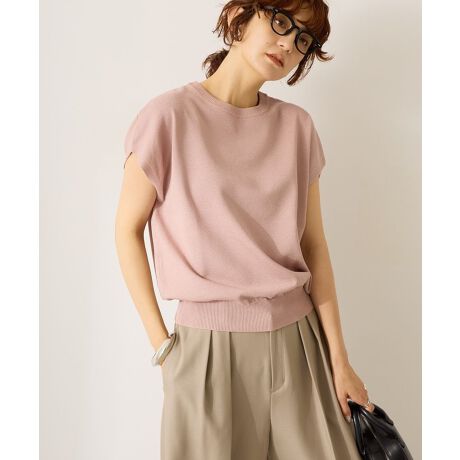 接触冷感ラメフレンチスリーブニットプルオーバー