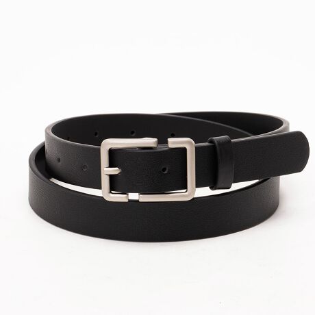 変形のスクエアバックルがアクセントになったやや細身のベルト。