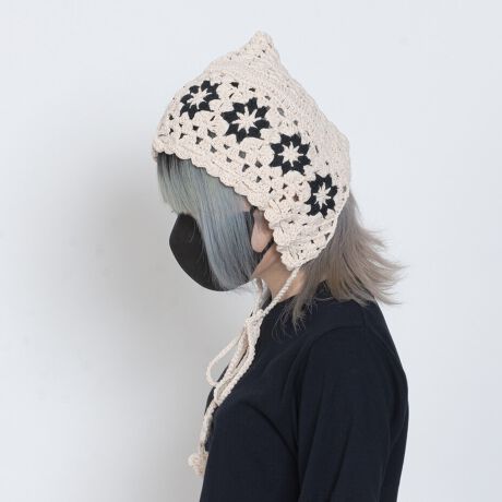 [型番:STY-41284]クロシェ花編みボンネットカラー展開ブラック / アイボリーサイズ展開FREEスペック最長:約29.0cm素材ポリエステル生産国中国