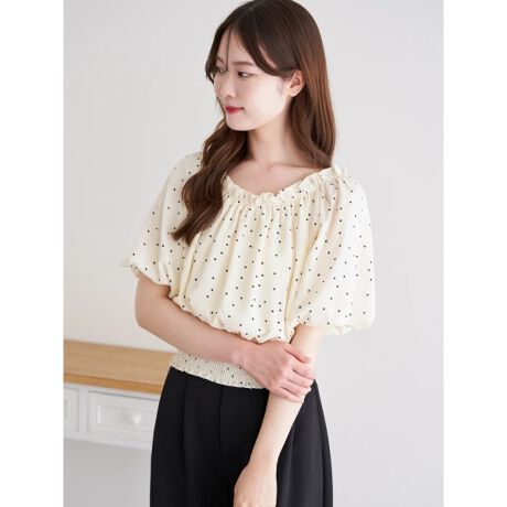 バックリボンドット柄ブラウス
