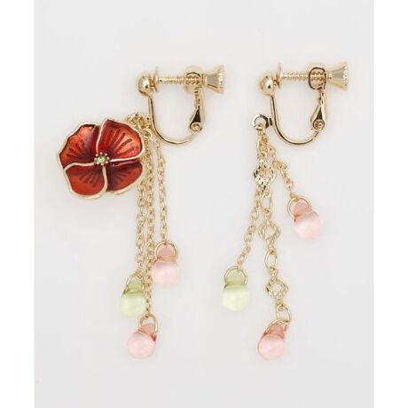 [型番:7CNZ5103-2025]ポピー(ヒナゲシ)をモチーフにしたイヤリング。透明感のあるビーズと合わせて、みずみずしいポピーを表現しました。軽やかに揺れるポピーの花が、可憐さを演出。