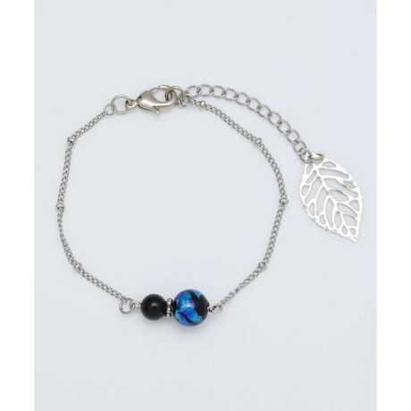 [型番:CEPZ5106-2025]海面から光が差し込む神秘的な海の色をイメージしたホタル玉のブレスレット。シンプルでありつつも、さりげないリーフのモチーフが素敵。サイズ調節が可能。光に当てるときらりと輝き、手元を美しく魅せてくれる。