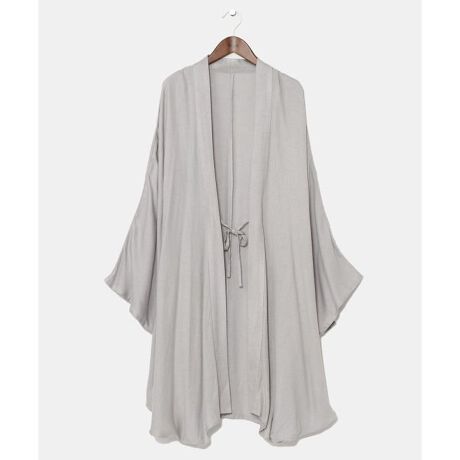 春の夕暮れをイメージした色合いのシンプルな羽織。柔らかくて落ち感のある生地とゆったりとした形で女性らしさと着心地の良さを兼ね備えたアイテム。さっと羽織れる四角い形は着こなしやすく、お尻まですっぽり隠れます。レーヨン素材でさらりと軽い着心地で、UVカット加工が施されています。