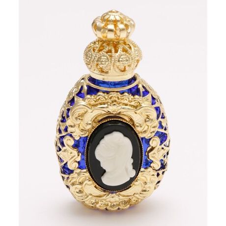 まるで宝石のようにきらきらと輝くアンティーク調の装飾や、女性の横顔を施した繊細なカメオが美しい香水瓶です。ガラス細工で有名なチェコで作られました。お気に入りの香りを持ち運んで、いつでも楽しめます。