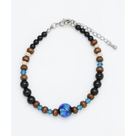 [型番:CEPZ5111-2025]海面から光が差し込む神秘的な海の色をイメージしたホタル玉のブレスレット。ずっと眺めていたくなる美しいホタル玉とウッドの組み合わせが絶妙。シンプルながらもコーディネートの程よいアクセントに。重ね付けもオススメ。