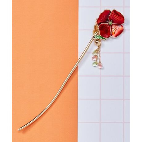 [型番:7CNZ5101-2025]ポピー(ヒナゲシ)を一輪髪に添えたように見えるかんざし。ゆるやかにカーブした軸で、しっかりと髪をまとめることが出来ます。みずみずしいポピーが、ヘアアレンジの主役に。