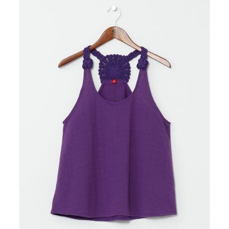 [型番:NLO-5101-2025]背面にクロッシェのついたタンクトップ。綿ニット素材なので通気性抜群で肌触りもいい一枚。明るい色味の7色展開で重ね着が楽しくなるアイテム。