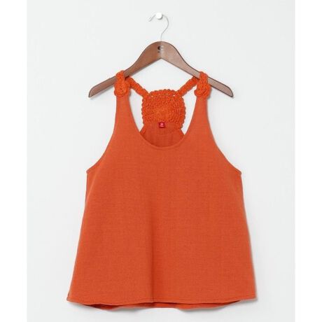 [型番:NLO-5101-2025]背面にクロッシェのついたタンクトップ。綿ニット素材なので通気性抜群で肌触りもいい一枚。明るい色味の7色展開で重ね着が楽しくなるアイテム。