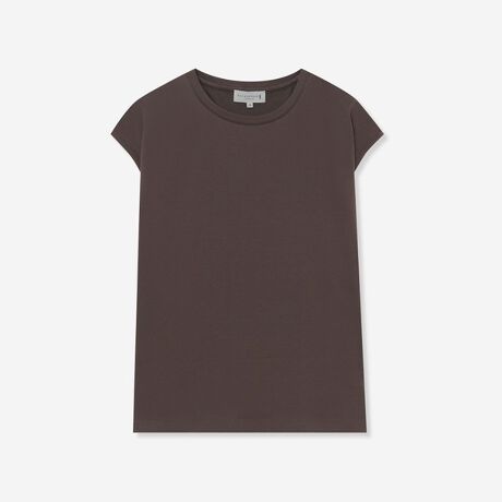 ヘルシーな印象のノースリーブプルオーバーです。裾、袖口は折り上げ接着する仕様で、肩傾斜・衿元・アームホールは身体に添わせながら着心地を考慮した仕立てになっています。