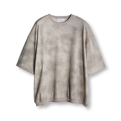 伸縮性のあるストレッチスムース素材を使用し、製品染め風のフルプリントを施したルーズフィットTEEです。