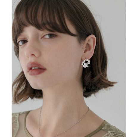 フラワーモチーフと小粒パールが愛らしい、フェミニンな印象のピアス