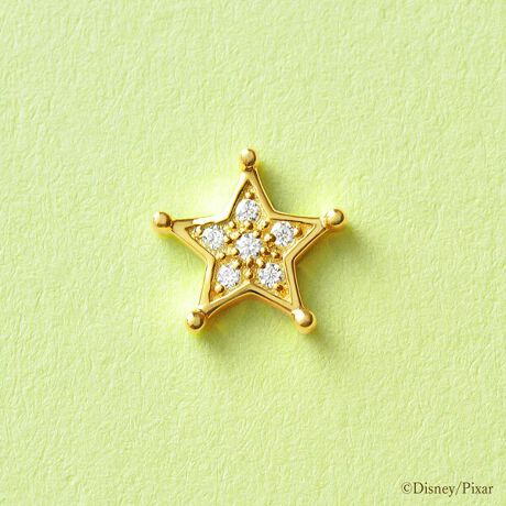 そんなトイ・ストーリーの主人公・ウッディの胸に輝く保安官のバッジをイメージしたソロピアスです。ウッディらしいアイコニックなモチーフをさりげなく身に着けることのできるアイテムになっています。