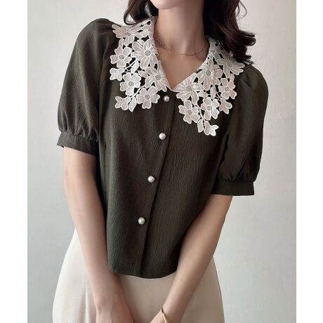 Meiru 【襟取り外し可能】2wayパフスリーブブラウス