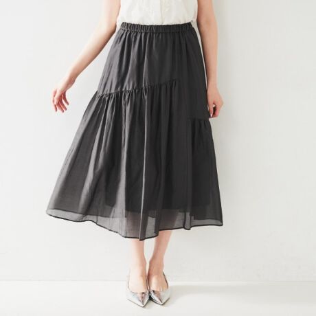 甘すぎない揺れるシルエットスカートなのでオフィスでも活躍出来る1着。