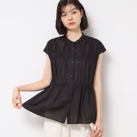 ウエスト部分のギャザーがさりげないペプラムシルエットを演出。
