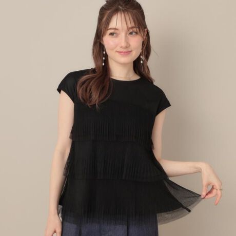 ふんわりとしたチュール素材をプリーツ加工したデザインチュニック