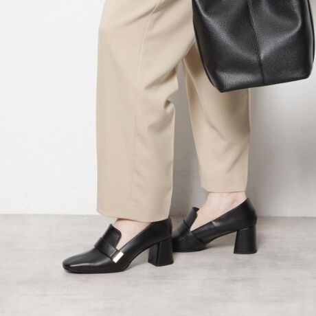 スクエアブロックヒールベルトローファー レイン対応