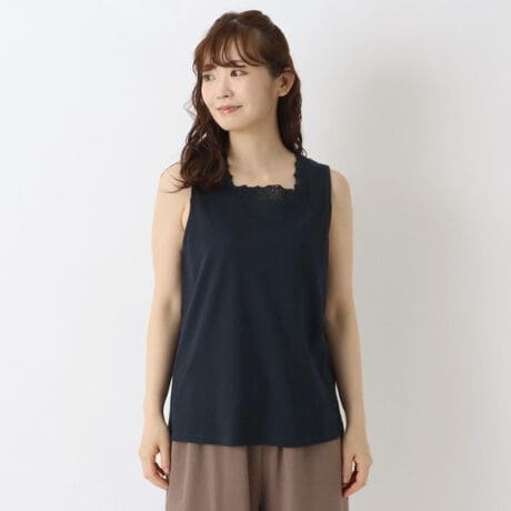 肌触りの良いコットン天竺のスクエアタンクトップです。