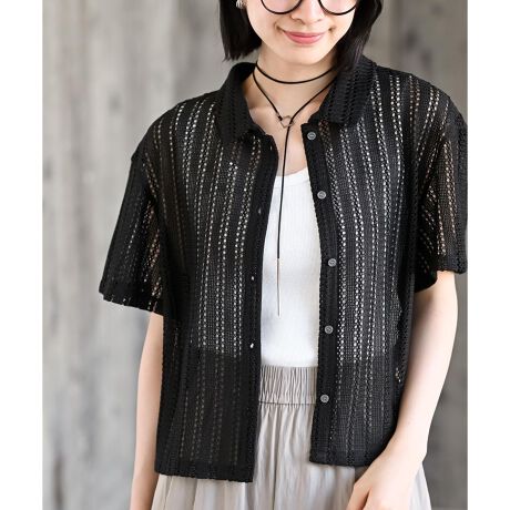 ヘルシーな肌見せと清涼感がポイントのクロシェ風レースのシャツ。
