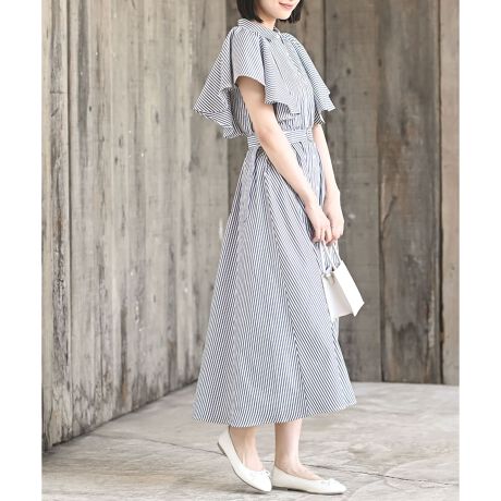 清涼感のある上品なストライプワンピース