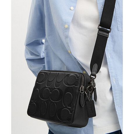 あらゆるシーンで活躍してくれるチャーター。普段のお買い物、通勤&通学、旅先などでも最高の気分に。ポリッシュド ペブル レザーで仕上げたクロスボディに、エンボス加工で施したコーチのマキシ シグネチャー パターンが目を引きます。