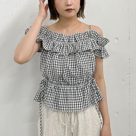 肩ひもが付いているのでオフショル部分が落ちてくることもありません。