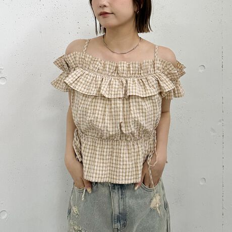 肩ひもが付いているのでオフショル部分が落ちてくることもありません。