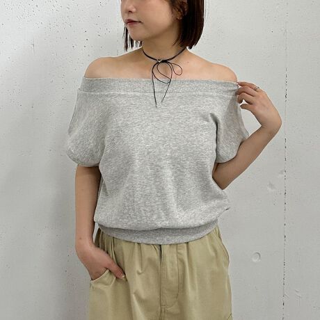 広めに開いた首元は伸縮性がありワンショルやオフショルにアレンジ可能。