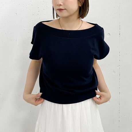 広めに開いた首元は伸縮性がありワンショルやオフショルにアレンジ可能。