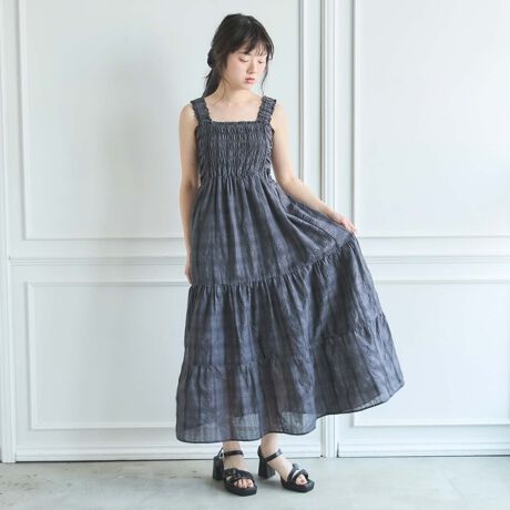 シュシュ付チェックシャーリングワンピース