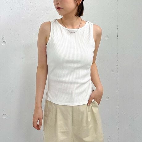 しっかりと着丈のあるタンクトップはインナーとしても大活躍。