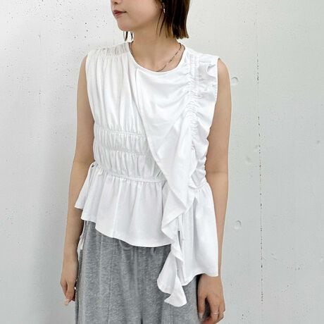 カットソー生地のノースリーブアイテムなので夏の1枚着にぴったりです。