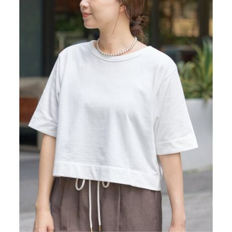 上品さとカジュアル感を兼ね備えた、ミニ裏毛素材の5分袖Tシャツ。