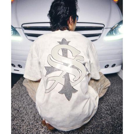 フロントにはブランドロゴ刺繍とピアス、バックには圧倒的な存在感を放つラインストーンとプリントで表現したグラフィックを大胆にオン。