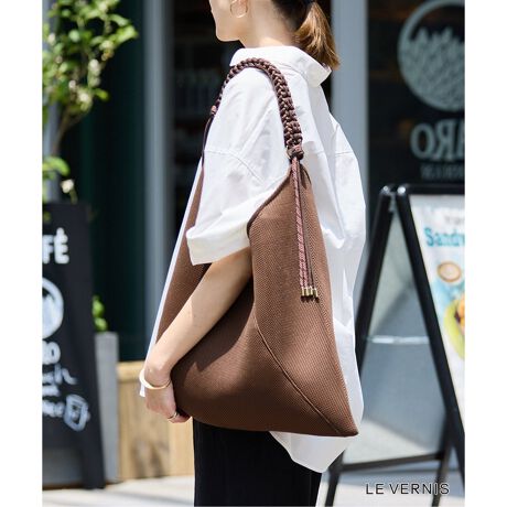 今シーズントレンドのパラコードで編んだハンドルが付いたメッシュバッグ。