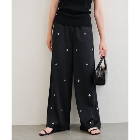 スタッズのフラワーモチーフがポイントになったパンツ。