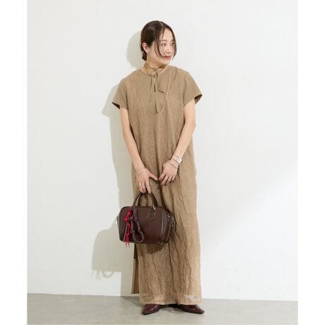 半袖のスキッパーワンピースと、シアーのノースリーブワンピースを重ねて着るワンピース。