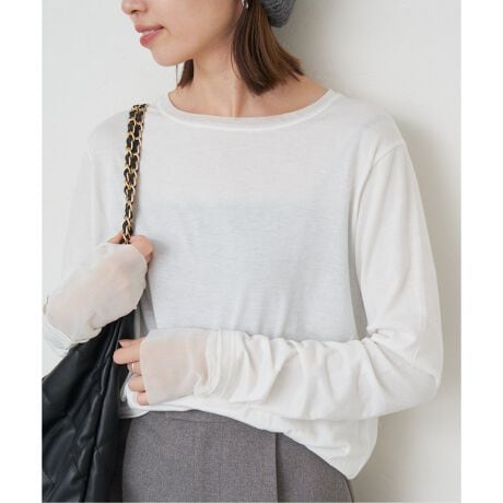 袖口からのレイヤードデザインがポイントのカットソー。