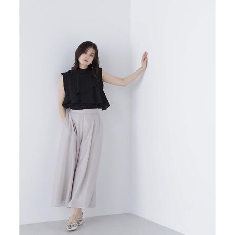 裾幅をふんだんに取ったフレアシルエットのワイドパンツ。動くたびにふわっと揺れ感のあるシルエットを演出します。フロントのタックは中縫いを入れることで、腰まわりをすっきりと見せながら程よくカバー。ウエストはベルト切り替えを入れつつ、後ろはゴム仕様のため、楽に着脱できるリラクシーなはき心地です。<素材>柔らかく程よい透け感のある合繊シアー素材を使用。透けにくい裏地が付いているので安心感のある着心地です。<詳細>仕様・開閉なし裏地・あり透け感・あり / 光沢・なし / 伸縮性・なし生地の厚さ・薄手※モデルの着用画像の場合、光の当たり具合により、実際の色味と異なって見えることがございます。色味は、商品単体の画像をご参照ください。