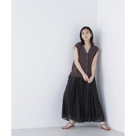 裾幅をふんだんに取ったフレアシルエットのワイドパンツ。動くたびにふわっと揺れ感のあるシルエットを演出します。フロントのタックは中縫いを入れることで、腰まわりをすっきりと見せながら程よくカバー。ウエストはベルト切り替えを入れつつ、後ろはゴム仕様のため、楽に着脱できるリラクシーなはき心地です。<素材>柔らかく程よい透け感のある合繊シアー素材を使用。透けにくい裏地が付いているので安心感のある着心地です。<詳細>仕様・開閉なし裏地・あり透け感・あり / 光沢・なし / 伸縮性・なし生地の厚さ・薄手※モデルの着用画像の場合、光の当たり具合により、実際の色味と異なって見えることがございます。色味は、商品単体の画像をご参照ください。