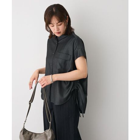*オンにもオフにもハマる万能トップスほんのり艶を帯びたレーヨン混素材が、上品な抜け感を演出してくれるバンドカラーシャツ。