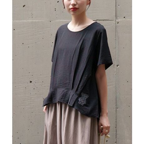 ゆったりな着心地にしつつウエスト周りにタックをとっているのでメリハリのあるシルエットに!