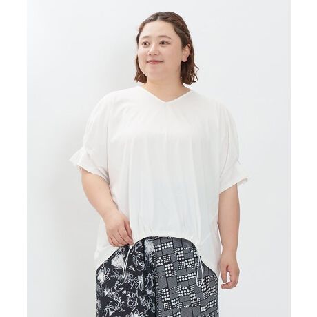 前側の裾にはゴムが入ってドロストデザインになっているのでお好きなシルエットに変更し、アイテムに合わせて楽しんでいただけます♪