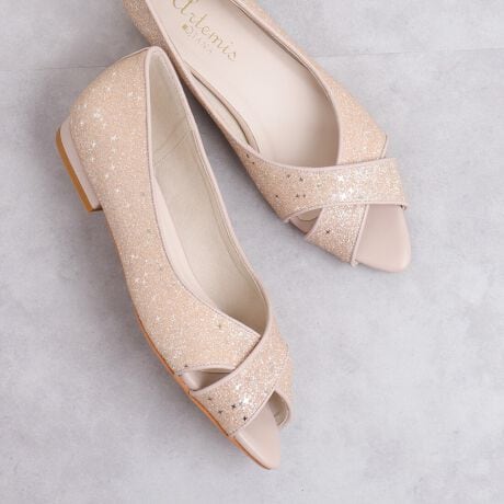 ・サンドグリッターの上に星型ラメをふんだんに散りばめたフラットシューズ。